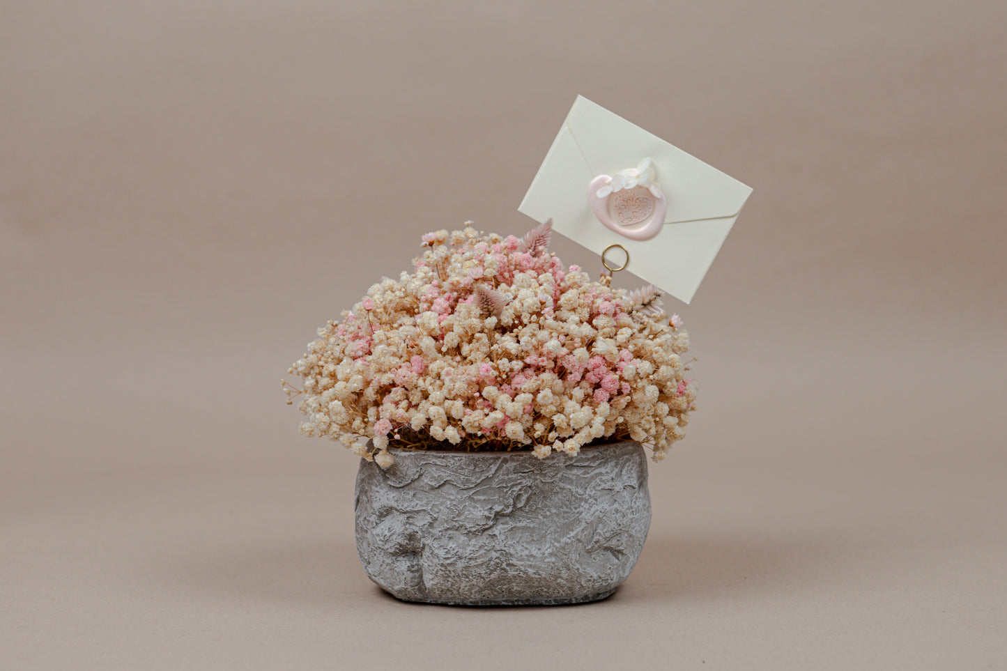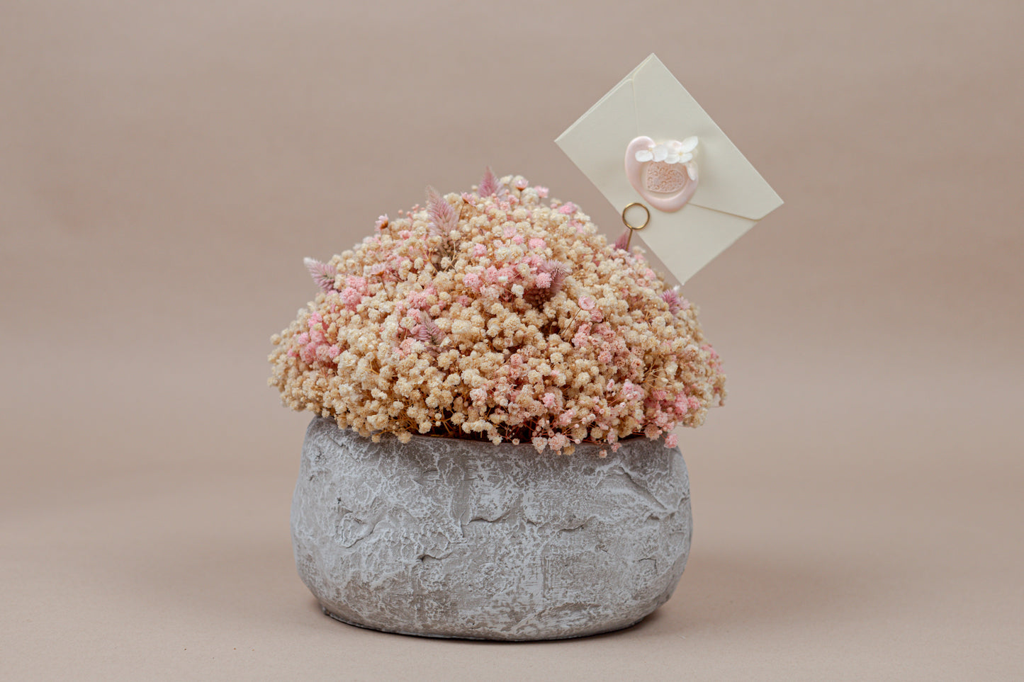Botanic Pink Pastel Bouquet in Brown Clay Vase